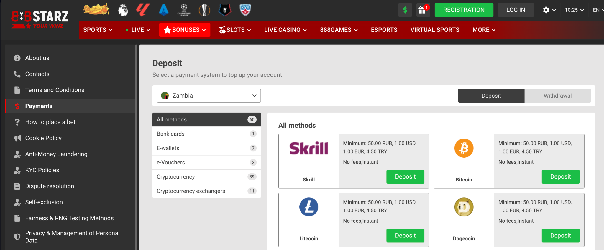 For the most accurate and current details about 888STARZ's betting rules, head to their terms and conditions section. Here, you'll find comprehensive information covering various aspects including minimum and maximum bet amounts, betting limits, accepted payment methods, withdrawal policies, rules concerning bonuses, promotions and free bets. The customer support team should also be able to provide you with detailed insights into their specific rules and regulations.