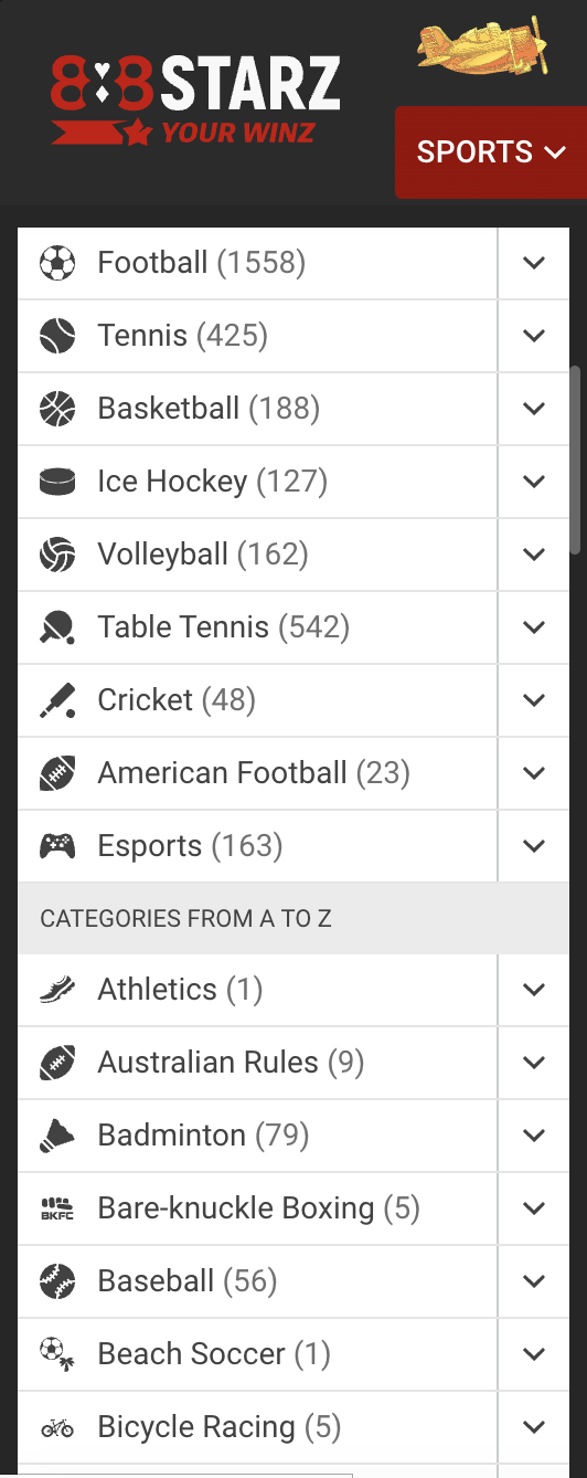 Sports enthusiasts in Zambia will find a plethora of options to wager on at 888STARZ. With over 40 disciplines available, here are some popular choices:
