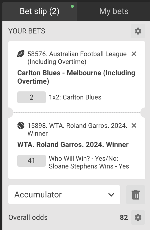 Click on the odds for the outcome you wish to bet on. This will add the selection to your betting slip.
